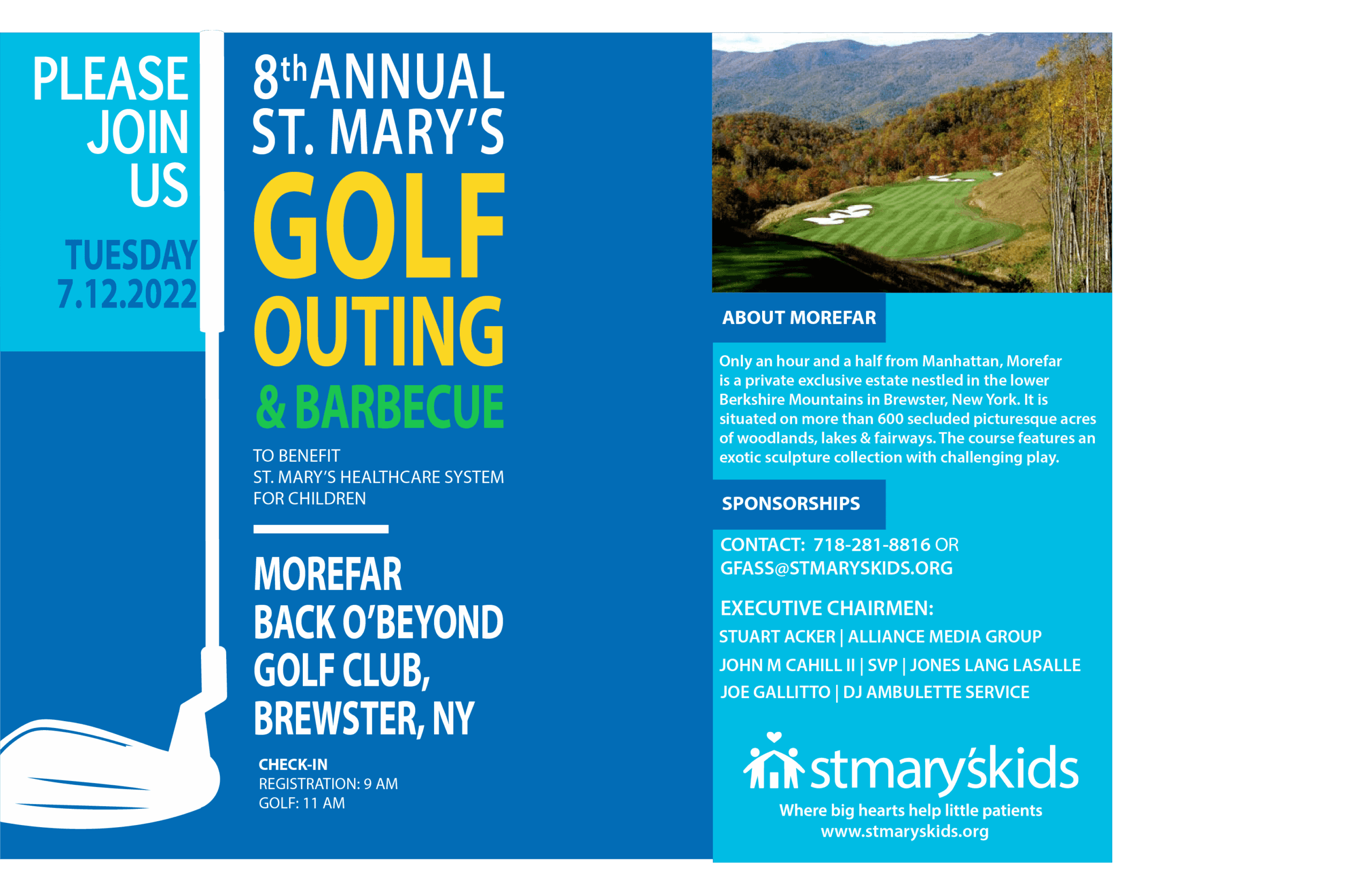 Join us on Tuesday, July 12th, for our 8th Annual Golf Outing and Barbecue supporting St. Mary’s Healthcare System for Children at Morefar Back O’Beyond in Brewster, New York.